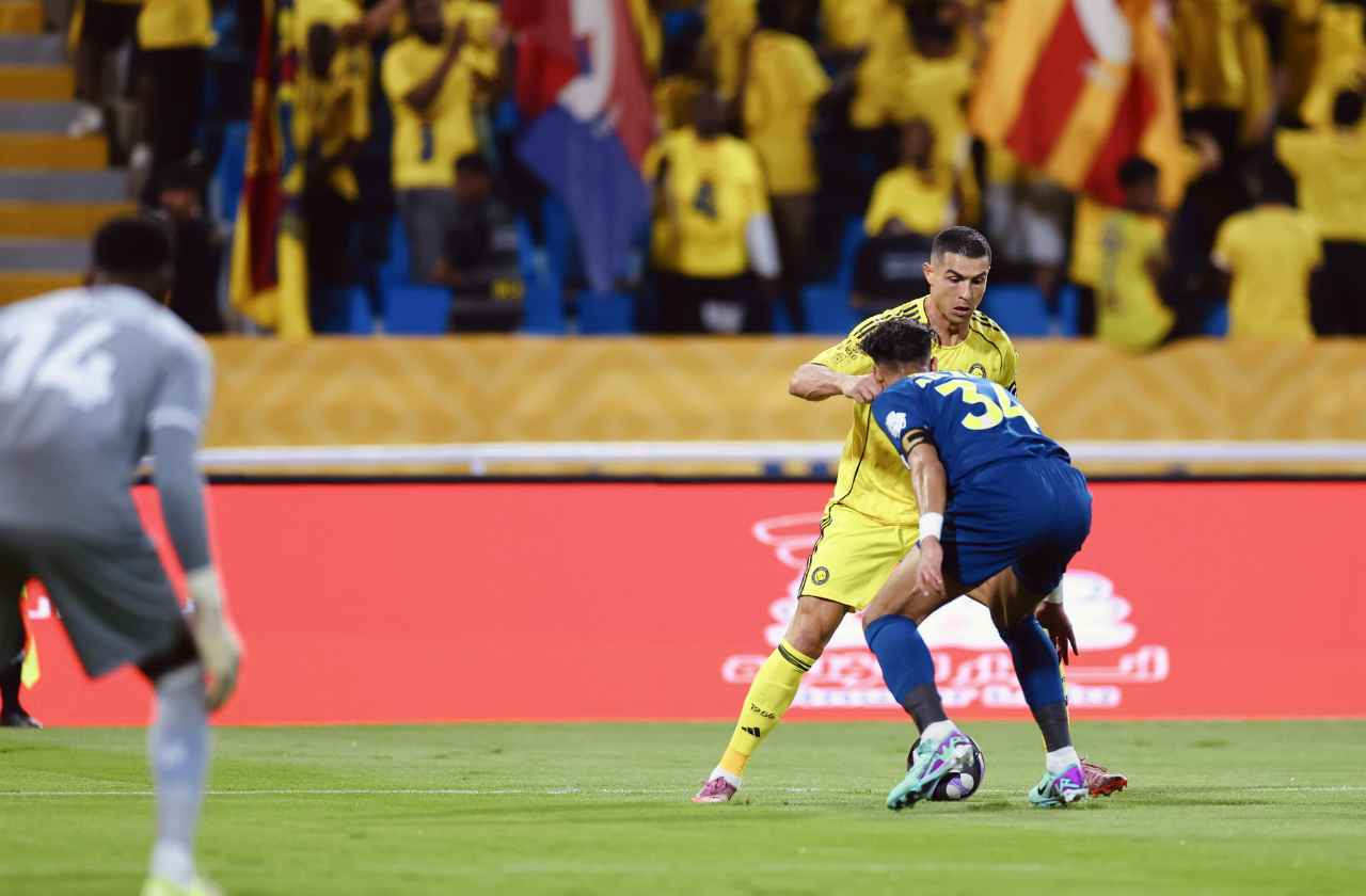 O Al-Nassr saiu na frente com um gol de cabeça do também português João Félix, aos 25 minutos do primeiro tempo. Mas a torcida precisou esperar até os 43 do segundo tempo para celebrar o gol que todos queriam ver. A jogada começou com o brasileiro Wesley, que recebeu pela direita e cruzou rasteiro para Cristiano Ronaldo bater de primeira, de pé esquerdo.