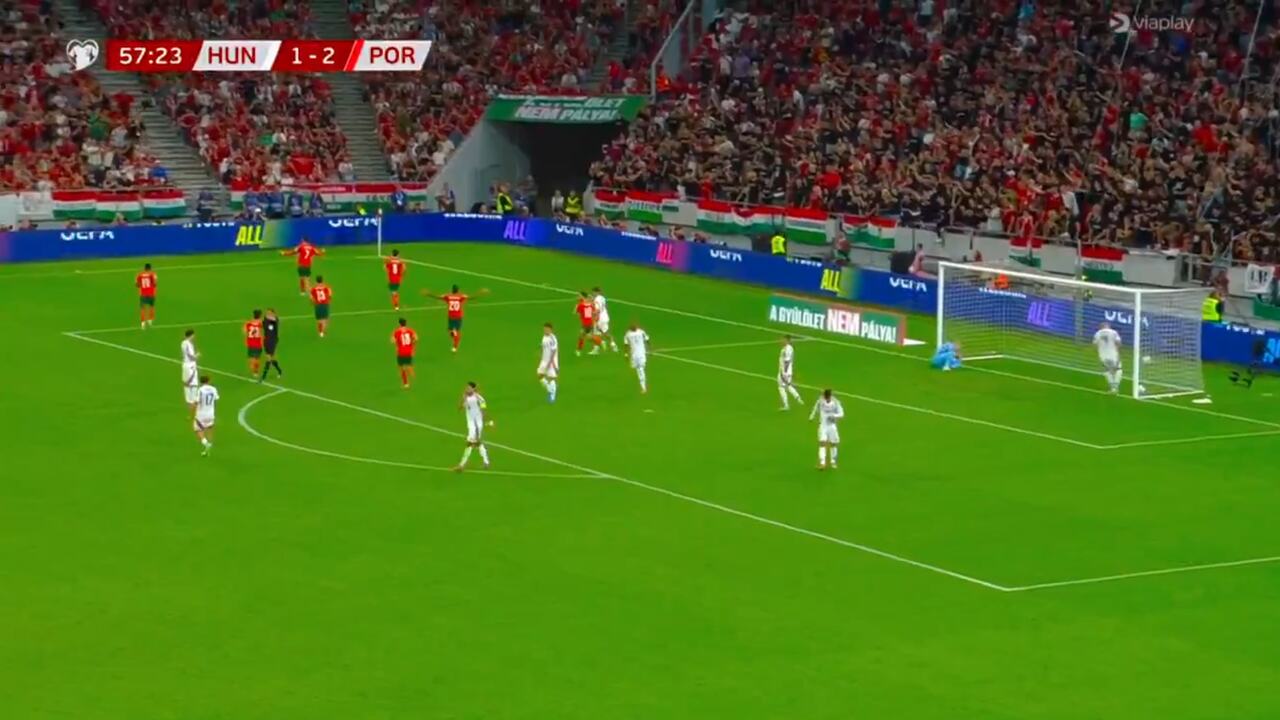 Assim, Portugal foi atrás do empate e conseguiu quinze minutos depois. João Neves cruzou para a área, Cancelo tocou para frente sem dominar, e Bernardo Silva bateu de primeira no alto do gol. Os jogadores da Hungria reclamaram de impedimento do camisa 10, mas o lance foi confirmado após revisão do VAR.