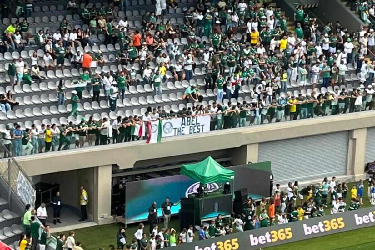 Em meio ao clima desfavorável para Abel Ferreira no Palmeiras, um grupo de torcedores levou uma faixa de apoio para a Arena Barueri. A mensagem da faixa dizia “Abel The Best”, que significa “O melhor” em inglês.